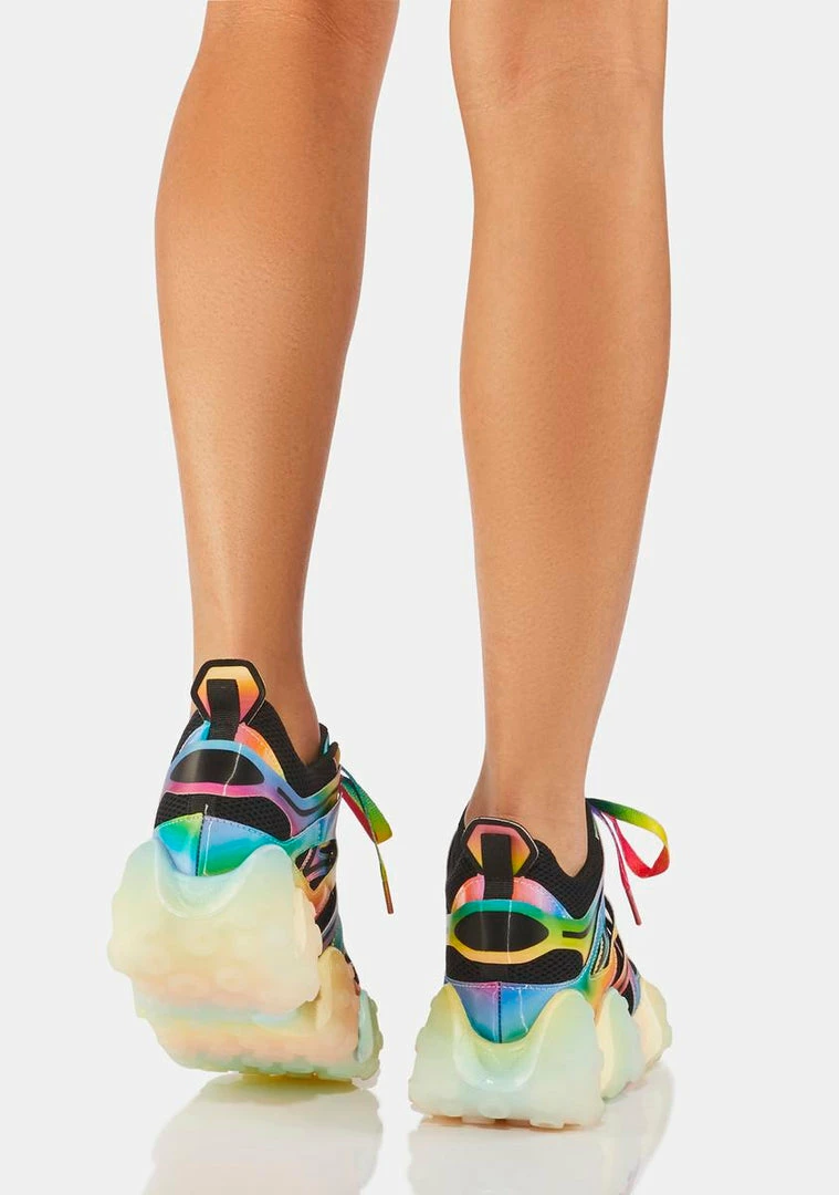 because you tend to take it there. These sneakers have a platform tentacle sole, a dynamic vegan leather upper with mesh panels, and a lace up in front.
