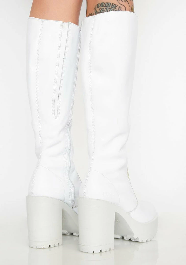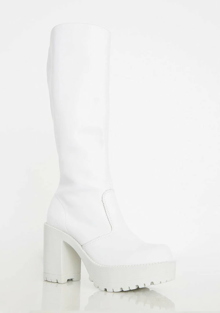 cuz youรขยยre always servinรขยย sass! Get what ya want in these sexxxy knee high boots that have block heels, chunky treaded platform soles, elastic gussets Nรขยย side zip closures.
